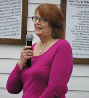 Sandra was awarded first place for her book, Iowa’s Historic Schools Highlighting Victorian Influences which came with a certificate and $300. Host says it meant the most to her that others recognize the extensive research that goes into all her books. Sandra is pictured speaking at the opening of the Iowa Rural Schools Museum.